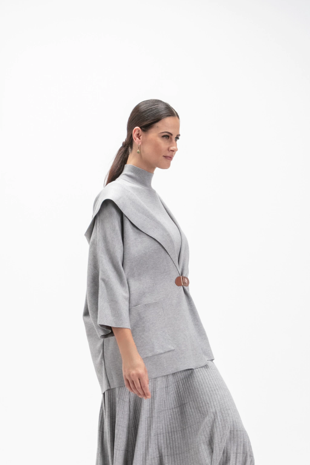 Dica de uso: Combine com blusas ajustadas de manga longa para um look equilibrado e elegante. Use com calças retas e botas para um visual sofisticado e atemporal.