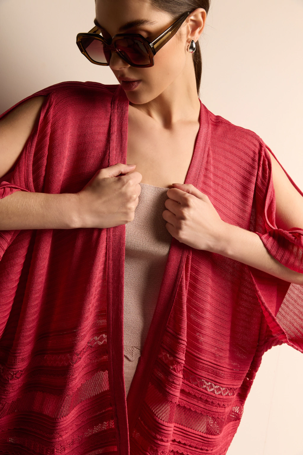 O Kimono Rococó é a peça perfeita para adicionar sofisticação e estilo às produções. Confeccionado em tricô de viscose e poliamida, apresenta um refinado mix de texturas e pontos, com detalhe vazado nos ombros que garante leveza e modernidade. Sua modelagem fluida oferece caimento elegante, ideal para sobreposições em qualquer estação.