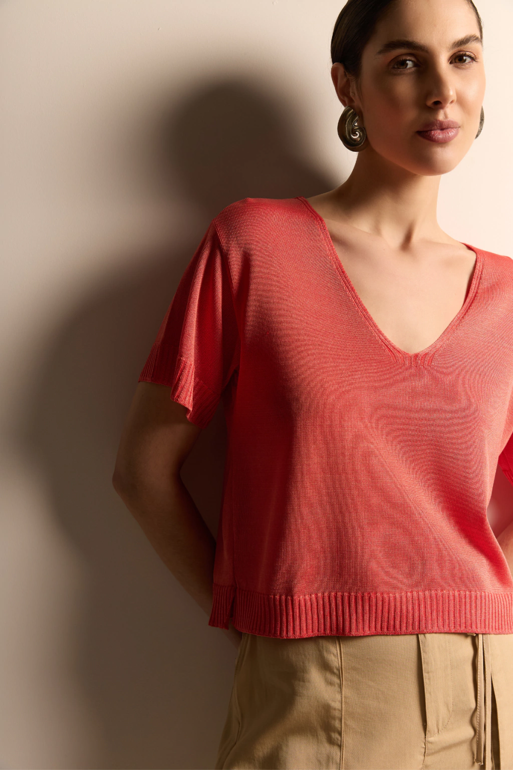 A T-Shirt Básica Barra Canelada é a união perfeita entre conforto e estilo casual. Confeccionada em tricô de viscose e poliamida, oferece toque macio e caimento leve. Possui gola V que valoriza o colo e acabamento canelado na barra e nas mangas, garantindo um visual moderno e atemporal. Ideal para compor produções versáteis do dia a dia com elegância.